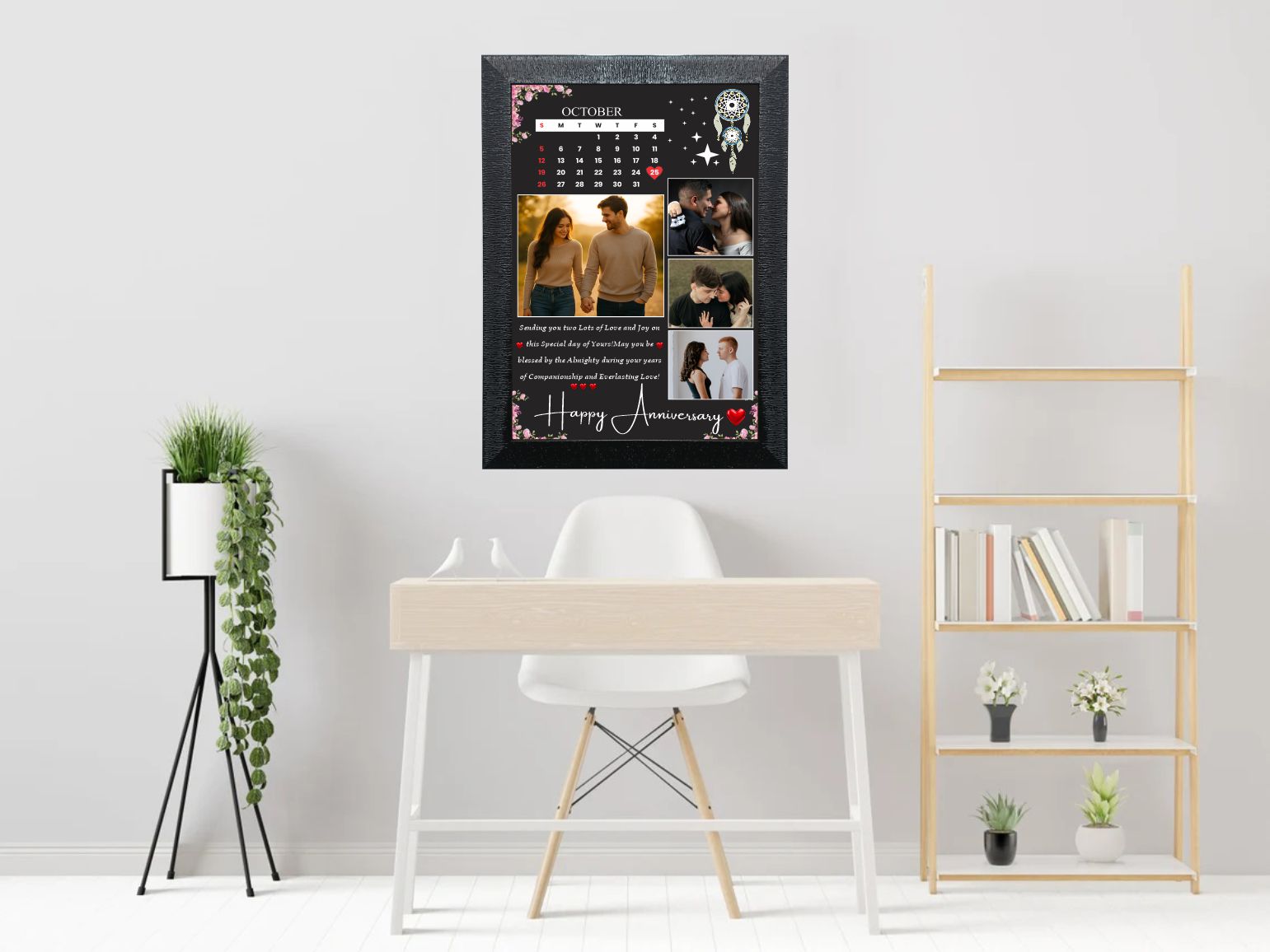 Celebrate the beautiful journey of love, togetherness, and cherished memories with our customized Anniversary Photo Frame. Designed to preserve your most special moments, this elegant frame adds a personal and emotional touch to your home décor. Whether it’s your first anniversary or a golden milestone, this photo frame perfectly showcases your favorite photograph along with names, dates, or a heartfelt message. Crafted using high-quality materials and premium printing, the frame ensures vibrant colors, sharp details, and long-lasting durability. Its timeless design blends seamlessly with any interior style, making it a meaningful gift for couples, spouses, or loved ones. Ideal for wall mounting or tabletop display, this anniversary photo frame is more than just décor—it’s a lasting reminder of love, memories, and togetherness to be treasured forever.