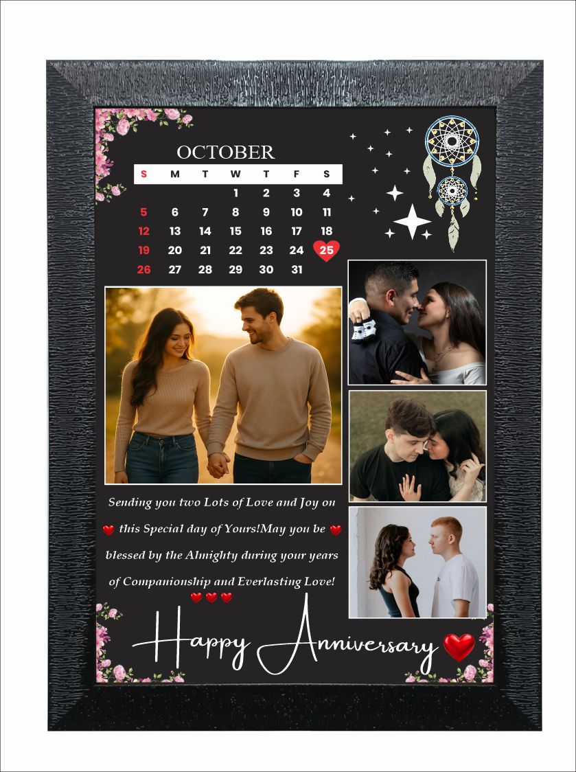 Celebrate the beautiful journey of love, togetherness, and cherished memories with our customized Anniversary Photo Frame. Designed to preserve your most special moments, this elegant frame adds a personal and emotional touch to your home décor. Whether it’s your first anniversary or a golden milestone, this photo frame perfectly showcases your favorite photograph along with names, dates, or a heartfelt message. Crafted using high-quality materials and premium printing, the frame ensures vibrant colors, sharp details, and long-lasting durability. Its timeless design blends seamlessly with any interior style, making it a meaningful gift for couples, spouses, or loved ones. Ideal for wall mounting or tabletop display, this anniversary photo frame is more than just décor—it’s a lasting reminder of love, memories, and togetherness to be treasured forever.