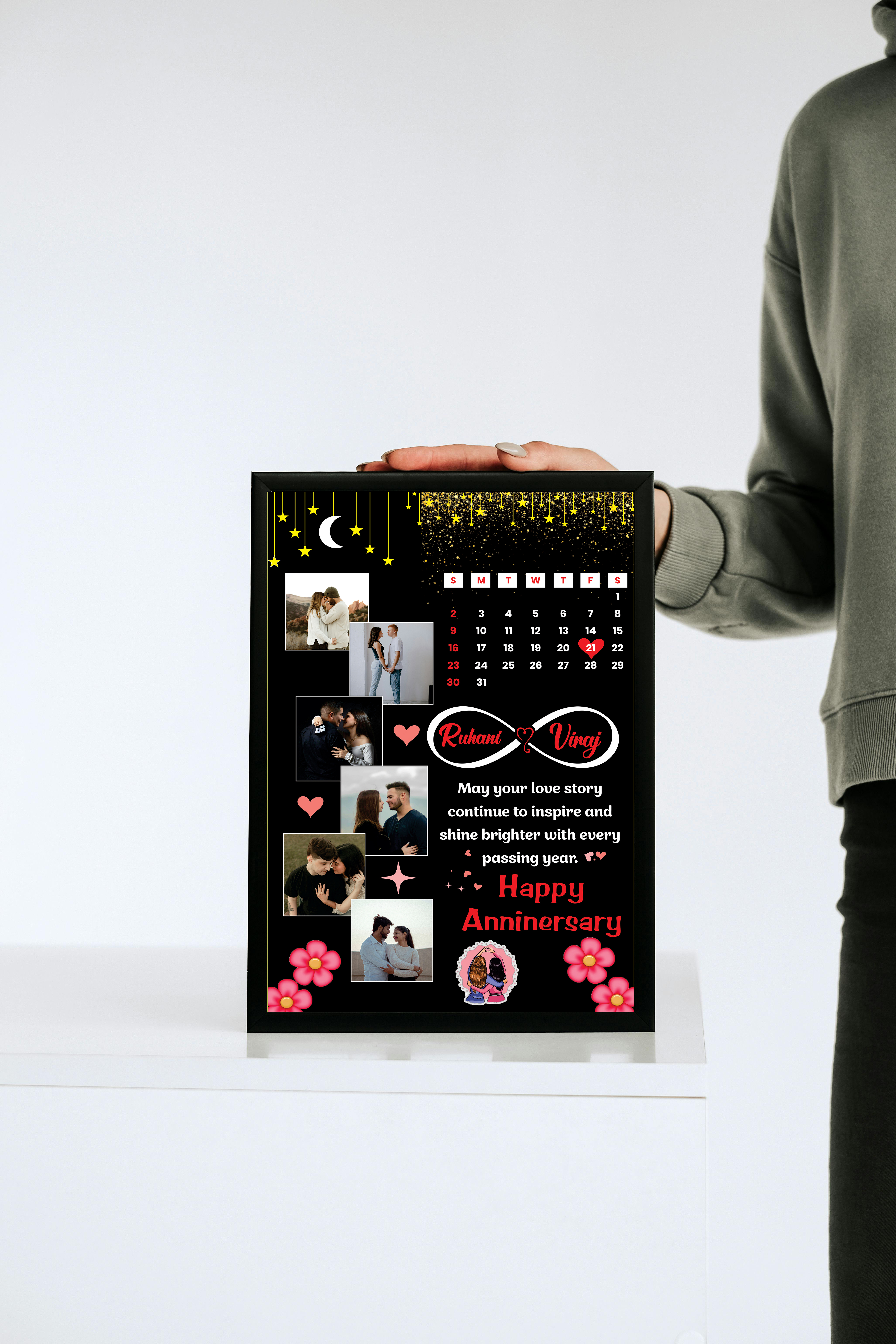 Celebrate your love story with a personalized anniversary calendar photo frame featuring your favorite moments, names, and a special date to remember forever.